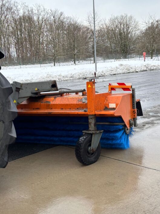 Großgeräte mit Streuautomaten (wege-, flächen- und mengenabhängiges Streuen) sowie Räumschilder von 2,80m bis 3,70 und einen 3m breiten Hochleistungs- Flughafenbesen 24h zur Verfügung